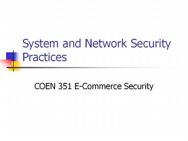 <Notice: Removed> System and Network Security Practices PowerPoint PPT Presentation