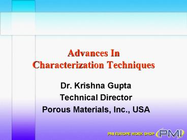 Title: Advances In Characterization Techniques