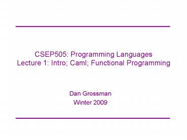 <Notice: Removed> CSEP505: Programming Languages Lecture 1: Intro; Caml; Functional Programming PowerPoint PPT Presentation