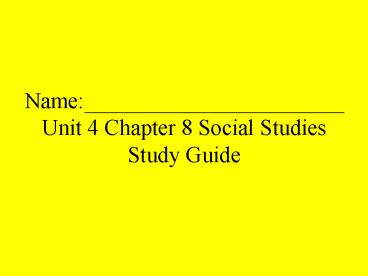 Title: Name:_______________________ Unit 4 Chapter 8 Social Studies Study Guide