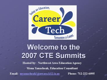 <Notice: Removed> Welcome to the 2007 CTE Summits PowerPoint PPT Presentation