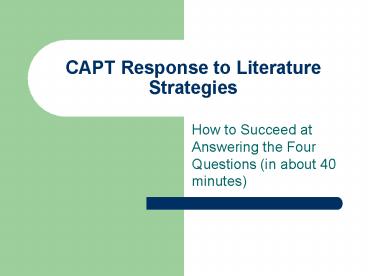Title: CAPT Response to Literature Strategies
