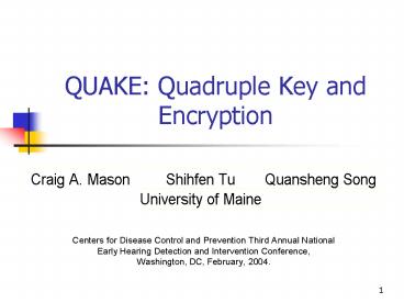 <Notice: Removed> QUAKE: Quadruple Key and Encryption PowerPoint PPT Presentation