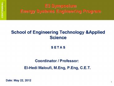 - El-Hedi Maloufi, M.Eng, P.Eng, C.E.T.