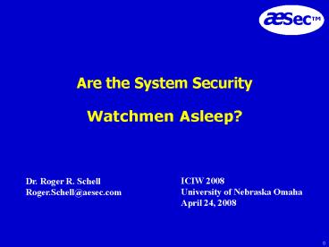 <Notice: Removed> Are the System Security Watchmen Asleep? PowerPoint PPT Presentation