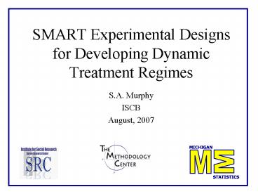 <Notice: Removed> SMART Experimental Designs for Developing Dynamic Treatment Regimes PowerPoint PPT Presentation