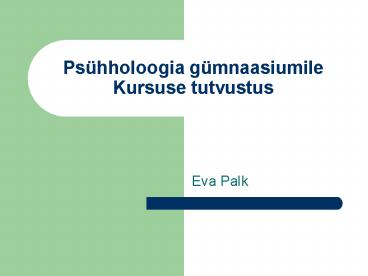 Psühholoogia gümnaasiumile Kursuse tutvustus