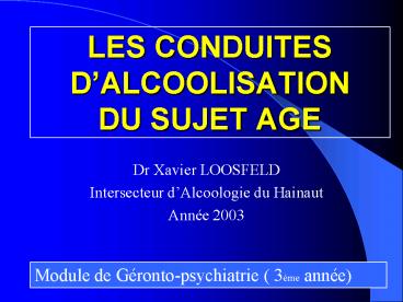 - Les conduites dalcoolisation du sujet âgé sont