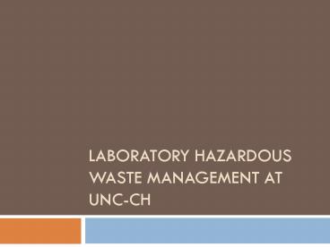 1Laboratory Hazardous Waste Management at UNC-CH