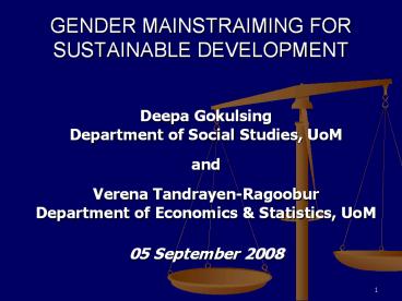 1GENDER MAINSTRAIMING FOR SUSTAINABLE DEVELOPMENT