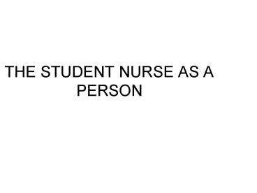 THE STUDENT NURSE AS A PERSON PowerPoint PPT Presentation
