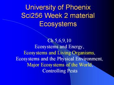 <Notice: Removed> University of Phoenix Sci256 Week 2 material Ecosystems PowerPoint PPT Presentation