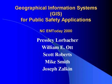 Title: Geographical Information Systems (GIS) for Public Safety Applications NC EMToday 2000