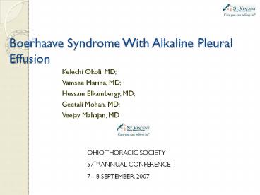 Boerhaave Syndrome With Alkaline Pleural Effusion PowerPoint PPT Presentation