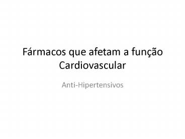 - Classificação de Fármacos Anti-hipertensivos