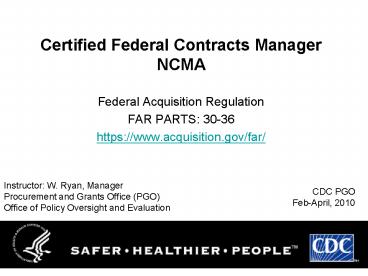 <Notice: Removed> Certified Federal Contracts Manager NCMA PowerPoint PPT Presentation