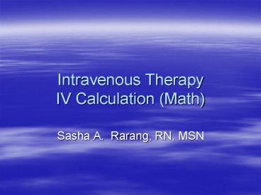 Intravenous Therapy IV Calculation (Math) PowerPoint PPT Presentation