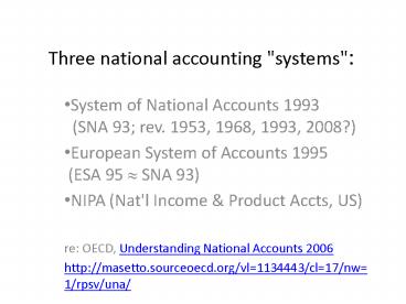 1953, 1968, 1993, 2008?) - European System of Accounts 1995 (ESA 95 ? SNA