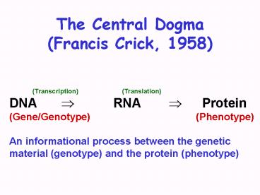 <Notice: Removed> The Central Dogma (Francis Crick, 1958) PowerPoint PPT Presentation