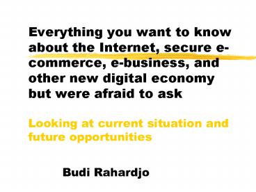 Title: Everything you want to know about the Internet, secure e-commerce, e-business, and other new digital economy but were afraid to ask Looking at current situation and future opportunities