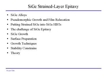 <Notice: Removed> SiGe Strained-Layer Epitaxy PowerPoint PPT Presentation