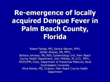 <Notice: Removed> Re-emergence of locally acquired Dengue Fever in Palm Beach County, Florida PowerPoint PPT Presentation