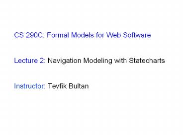 Title: CS 290C: Formal Models for Web Software Lecture 2: Navigation Modeling with Statecharts Instructor: Tevfik Bultan