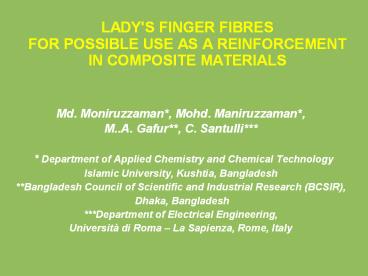 <Notice: Removed> LADY'S FINGER FIBRES FOR POSSIBLE USE AS A REINFORCEMENT IN COMPOSITE MATERIALS PowerPoint PPT Presentation