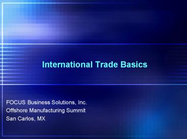 NAFTA provider of new part production - Offshore can advise dutiable status on