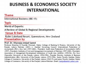 1BUSINESS ECONOMICS SOCIETY INTERNATIONAL