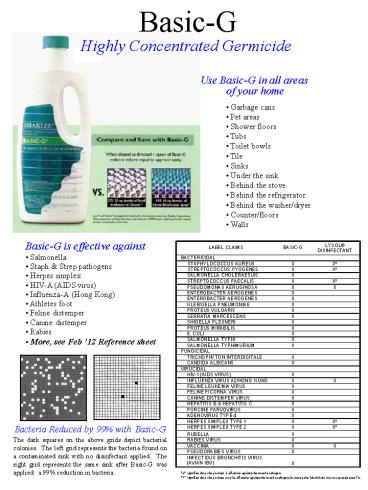 LABEL CLAIMS BASIC-G LYSOL DISINFECTANT