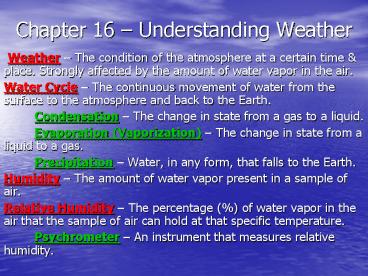 Chapter 16 Understanding Weather