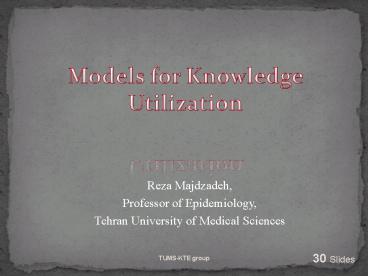 <Notice: Removed> Models for Knowledge Utilization PowerPoint PPT Presentation