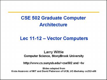 <Notice: Removed> CSE 502 Graduate Computer Architecture Lec 11-12 PowerPoint PPT Presentation