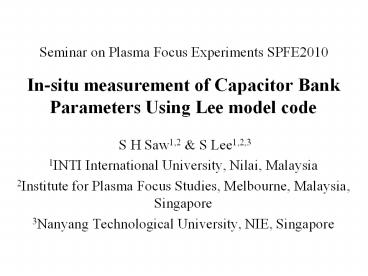 Title: Seminar on Plasma Focus Experiments SPFE2010