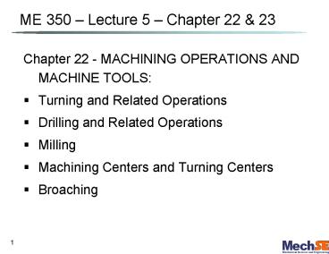1ME 350 Lecture 5 Chapter 22 23