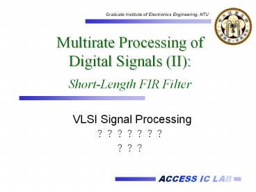 <Notice: Removed> Multirate Processing of Digital Signals (II): PowerPoint PPT Presentation