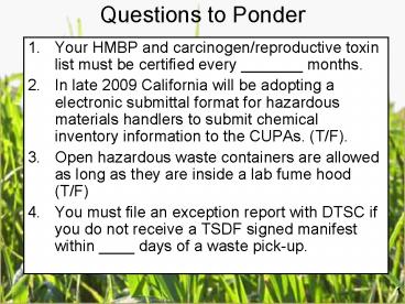 <Notice: Removed> Questions to Ponder PowerPoint PPT Presentation