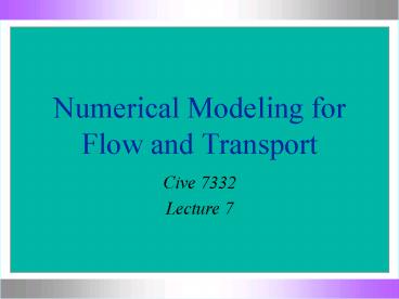 <Notice: Removed> Numerical Modeling for Flow and Transport PowerPoint PPT Presentation