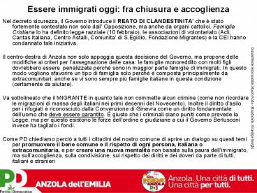 Title: Essere immigrati oggi: fra chiusura e accoglienza