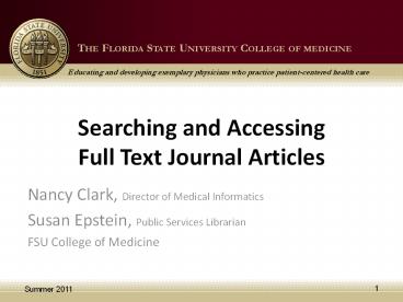 <Notice: Removed> Searching and Accessing Full Text Journal Articles PowerPoint PPT Presentation