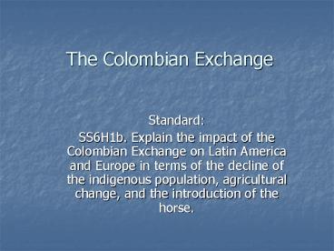 The Colombian Exchange PowerPoint PPT Presentation