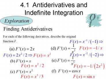 4.1 Antiderivatives and Indefinite Integration PowerPoint PPT Presentation