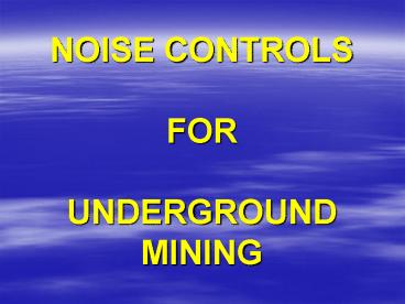 NOISE CONTROLS FOR UNDERGROUND MINING PowerPoint PPT Presentation