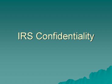 <Notice: Removed> IRS Confidentiality PowerPoint PPT Presentation