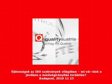 ránk a jövoben a minoségirányítás területén? - Budapest, 2010 11 23