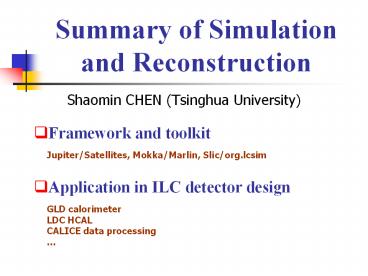 Jupiter/Satellites, Mokka/Marlin, Slic/org.lcsim