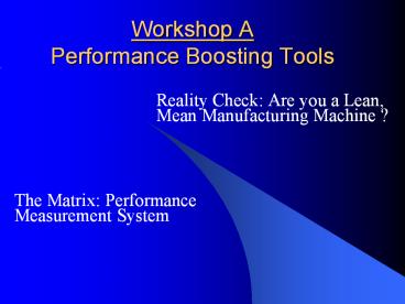 Workshop A Performance Boosting Tools PowerPoint PPT Presentation