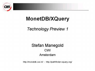 MonetDB/XQuery Technology Preview 1 PowerPoint PPT Presentation