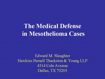 Title: The Medical Defense in Mesothelioma Cases